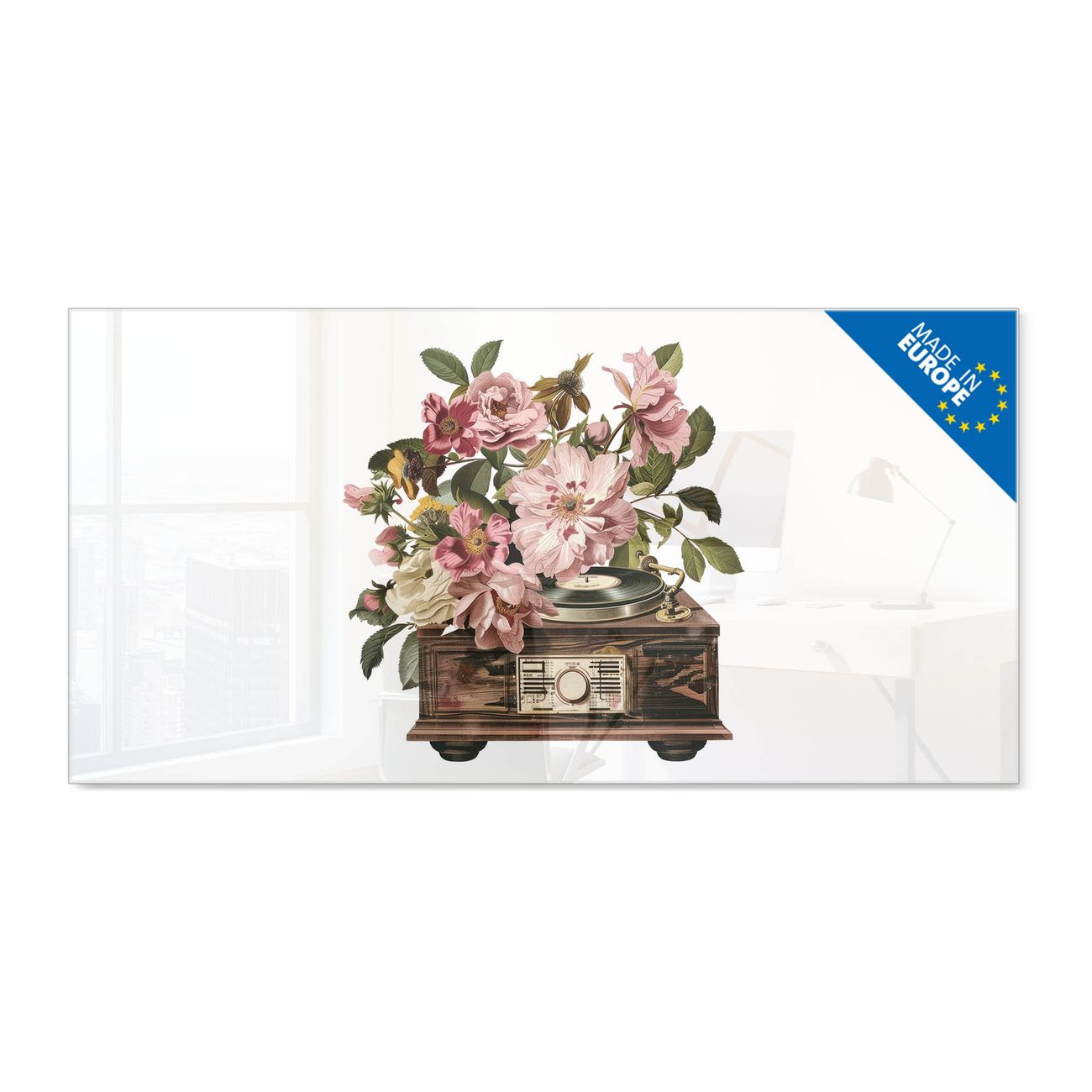 Glas Magnettafel im Querformat Motiv Grammophon Vintage