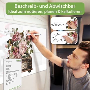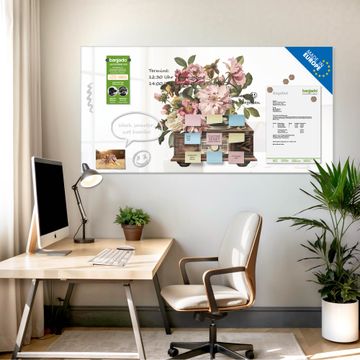 Die banjado Glas Magnettafel mit dem Motiv Motiv Blütenklang verbindet Funktionalität mit Stil. Sie ersetzt das Zettelchaos durch klare Strukturen und bringt dabei eine warme, natürliche Atmosphäre in Ihr Zuhause. Ob im Büro, in der Küche oder im Eingangsbereich - dieses Design-Board zieht Blicke an und sorgt für Ordnung mit Charakter.