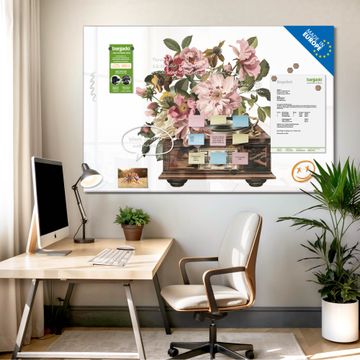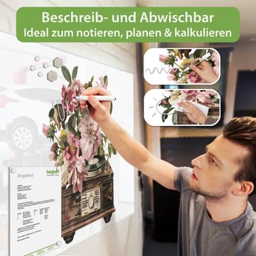 Die banjado Glas Magnettafel mit dem Motiv Motiv Blütenklang verbindet Funktionalität mit Stil. Sie ersetzt das Zettelchaos durch klare Strukturen und bringt dabei eine warme, natürliche Atmosphäre in Ihr Zuhause. Ob im Büro, in der Küche oder im Eingangsbereich - dieses Design-Board zieht Blicke an und sorgt für Ordnung mit Charakter.