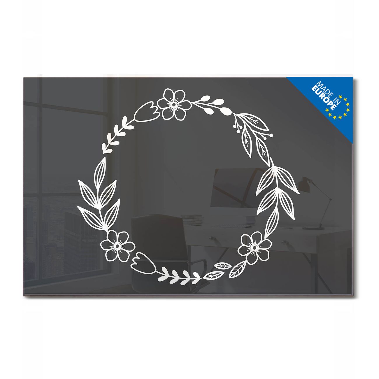 Glas Magnettafel im Querformat Motiv Blütenkranz
