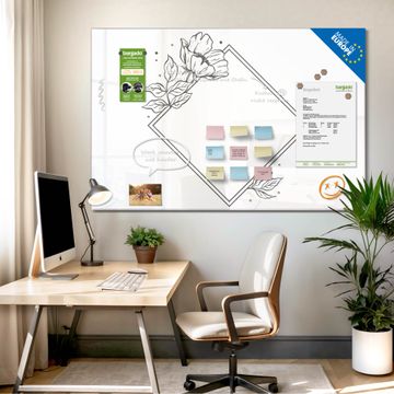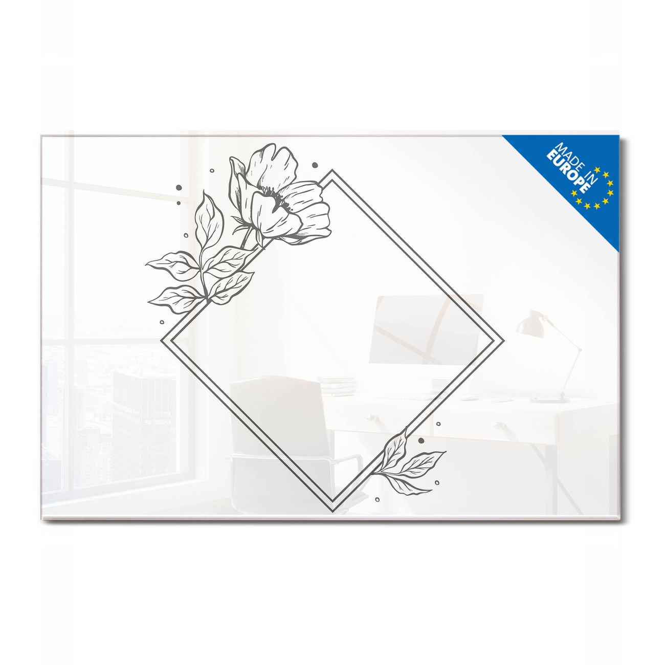 Glas Magnettafel im Querformat Motiv Blütenrahmen