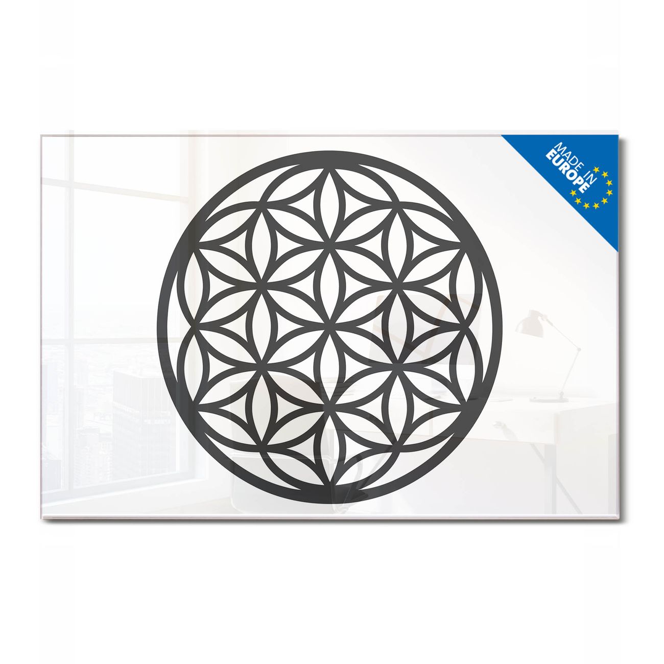 Glas Magnettafel im Querformat Motiv Blume des Lebens Muster