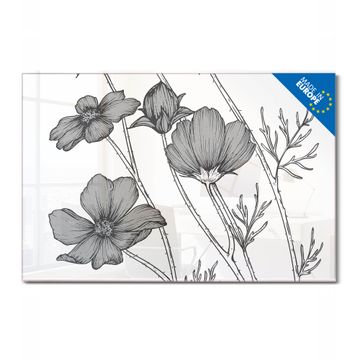 Glas Magnettafel im Querformat Motiv Blumen in Schwarz-Weiß