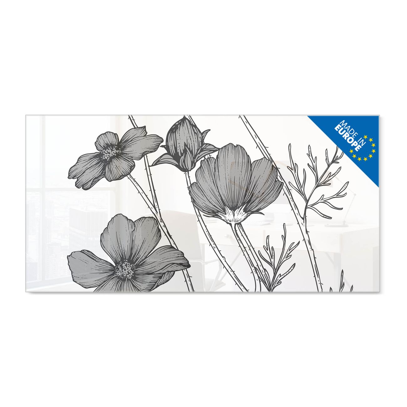 Ein Stück Design, das Ihren Alltag organisiert. Schreiben, heften, inspirieren - alles an einem Ort. Qualität, die man spürt. Montage leicht gemacht. Handwerk mit Herz - veredelt in Sachsen. Einzigartiges Design mit Motiv Motiv Blumen in Schwarz-Weiß Beschreibbare Glasoberfläche, leicht zu reinigen Starke Magnetkraft durch Stahlrückwand Inklusive 4 Neodym-Magneten Flexible Montageoptionen Handveredelt in Sachsen - Qualität, die bleibt