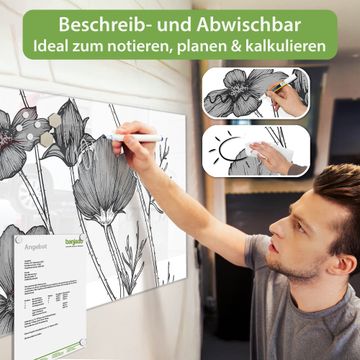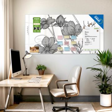 Die banjado Glas Magnettafel mit dem Motiv Motiv Blumen in Schwarz-Weiß verbindet Funktionalität mit Stil. Sie ersetzt das Zettelchaos durch klare Strukturen und bringt dabei eine warme, natürliche Atmosphäre in Ihr Zuhause. Ob im Büro, in der Küche oder im Eingangsbereich - dieses Design-Board zieht Blicke an und sorgt für Ordnung mit Charakter.