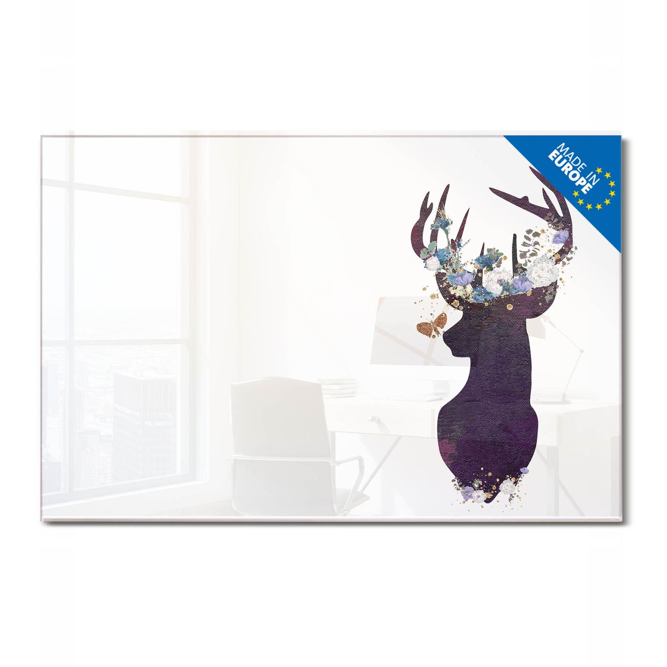 Glas Magnettafel im Querformat Motiv Blumengeweih-Hirsch