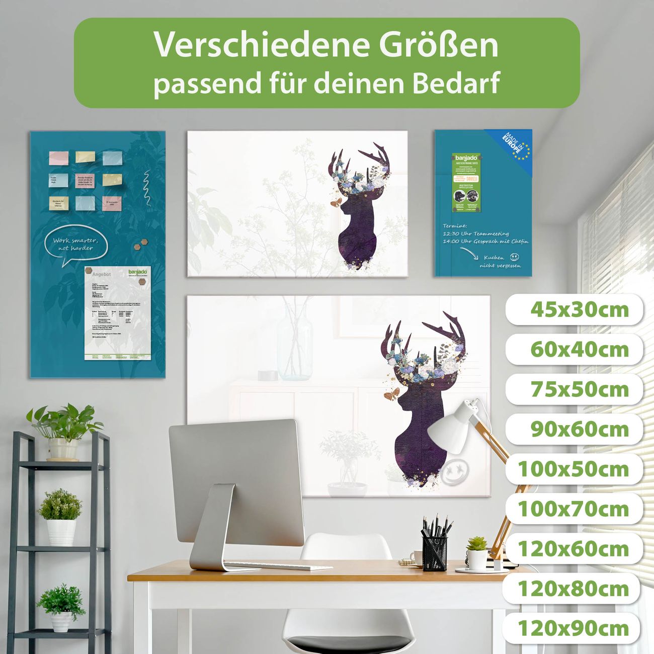 Ein Stück Design, das Ihren Alltag organisiert. Schreiben, heften, inspirieren - alles an einem Ort. Qualität, die man spürt. Montage leicht gemacht. Handwerk mit Herz - veredelt in Sachsen. Einzigartiges Design mit Motiv Motiv Blumengeweih-Hirsch Beschreibbare Glasoberfläche, leicht zu reinigen Starke Magnetkraft durch Stahlrückwand Inklusive 4 Neodym-Magneten Flexible Montageoptionen Handveredelt in Sachsen - Qualität, die bleibt