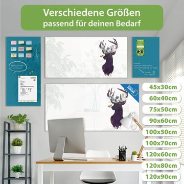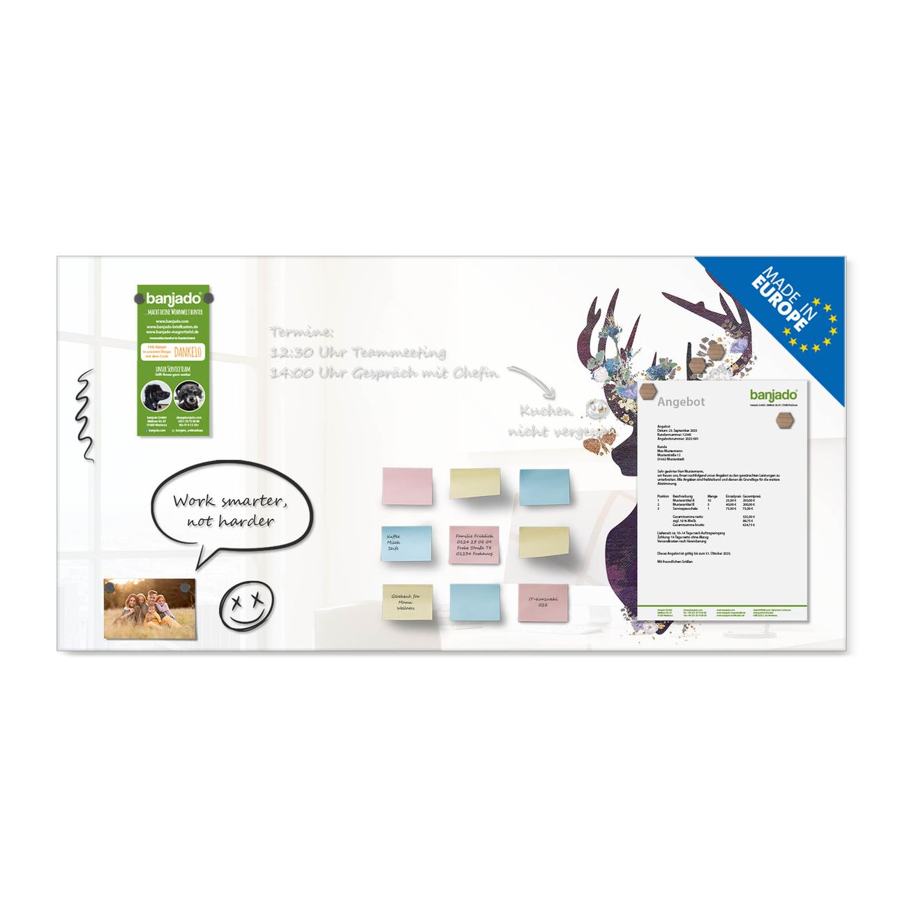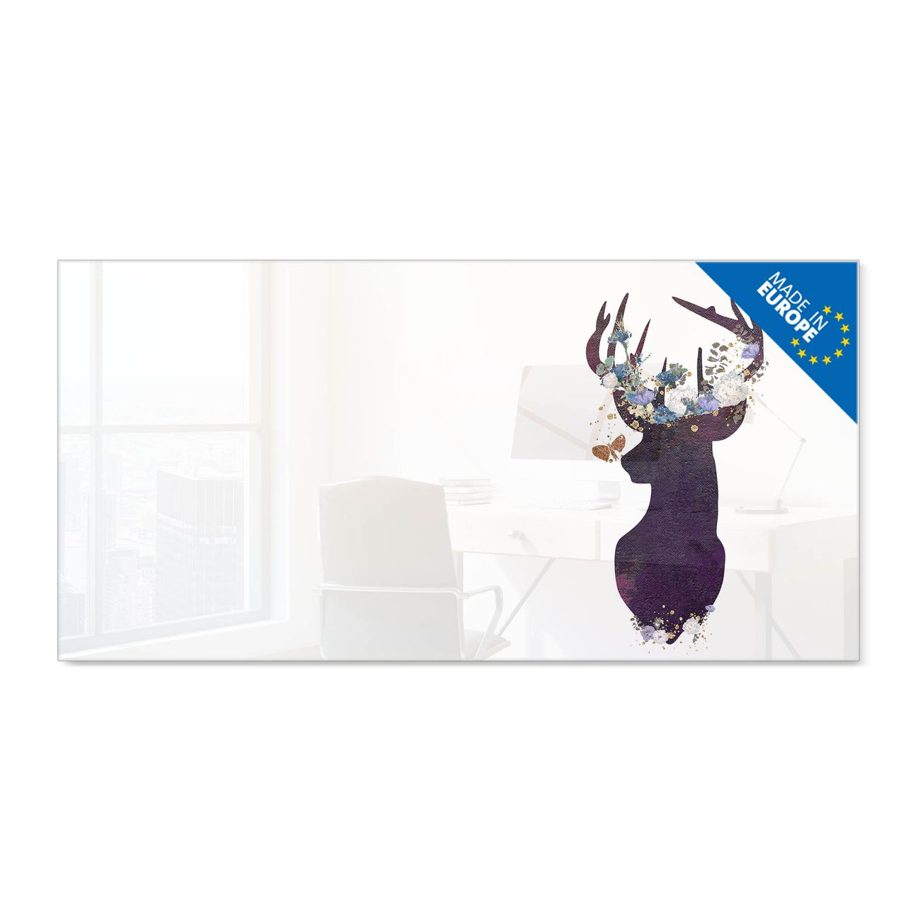 Glas Magnettafel im Querformat Motiv Hirsch Blumengeweih