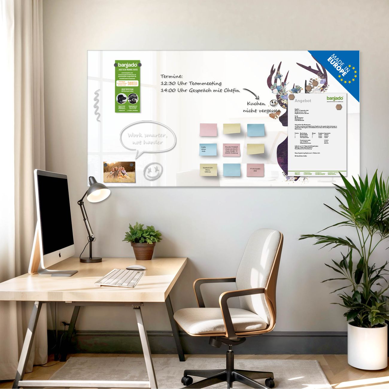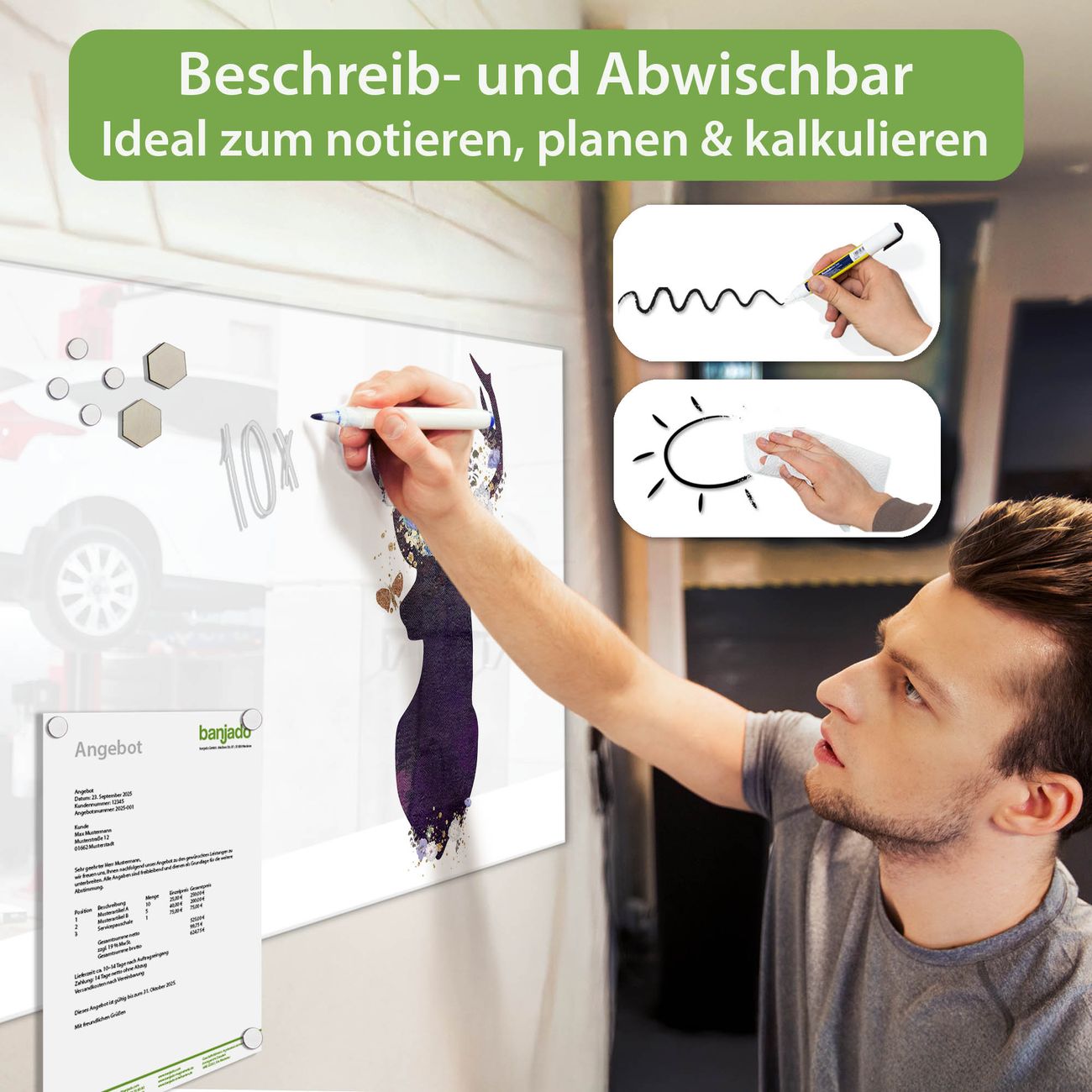 Jede Glas Magnettafel wird in unserer Werkstatt von Hand gefertigt und sorgfältig geprüft. So erhalten Sie ein echtes Qualitätsprodukt, das Funktion und Ästhetik perfekt vereint.?? Warum banjado?