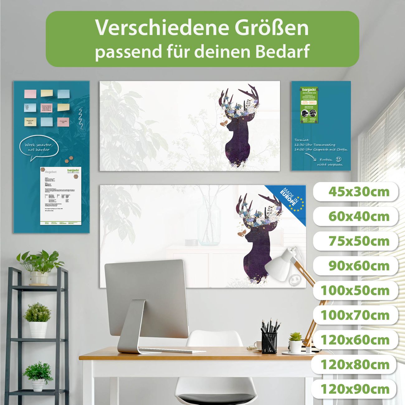Ein Stück Design, das Ihren Alltag organisiert. Schreiben, heften, inspirieren - alles an einem Ort. Qualität, die man spürt. Montage leicht gemacht. Handwerk mit Herz - veredelt in Sachsen. Einzigartiges Design mit Motiv Motiv Blumengeweih-Hirsch Beschreibbare Glasoberfläche, leicht zu reinigen Starke Magnetkraft durch Stahlrückwand Inklusive 4 Neodym-Magneten Flexible Montageoptionen Handveredelt in Sachsen - Qualität, die bleibt