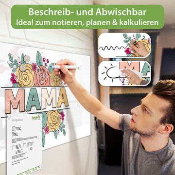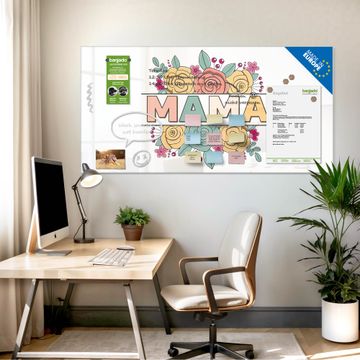 Ein Stück Design, das Ihren Alltag organisiert. Schreiben, heften, inspirieren - alles an einem Ort. Qualität, die man spürt. Montage leicht gemacht. Handwerk mit Herz - veredelt in Sachsen. Einzigartiges Design mit Motiv Motiv Blumengruß für Mama Beschreibbare Glasoberfläche, leicht zu reinigen Starke Magnetkraft durch Stahlrückwand Inklusive 4 Neodym-Magneten Flexible Montageoptionen Handveredelt in Sachsen - Qualität, die bleibt
