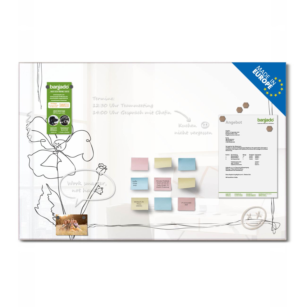 Glas Magnettafel im Querformat Motiv Blumenrahmen Skizze