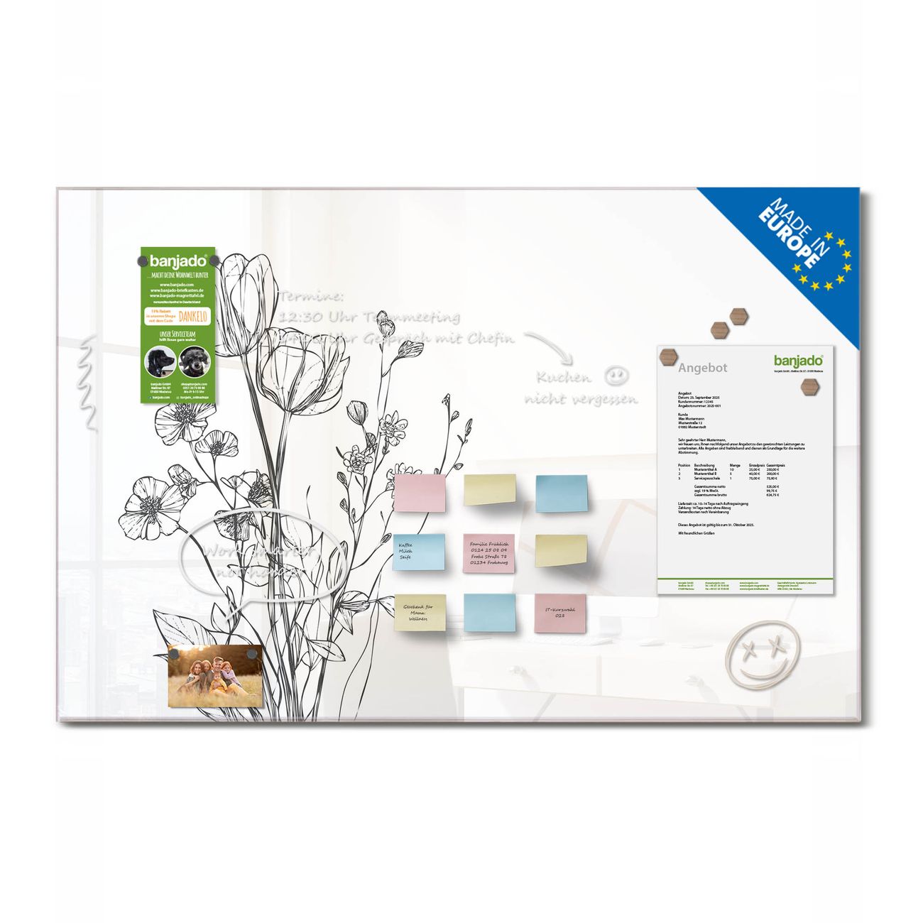 Glas Magnettafel im Querformat Motiv Blumenskizze