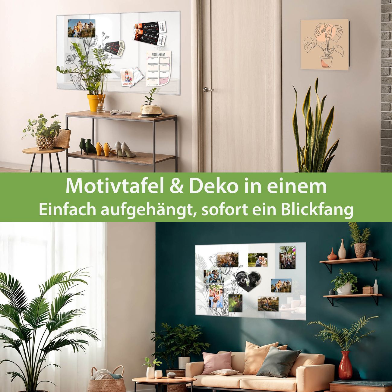 Dank der flachen Bauweise wirkt die Magnetwand fast schwebend an der Wand. Sie können sie mit Montagekleber elegant befestigen oder mit einem passenden Set klassisch verschrauben - beides sorgt für sicheren Halt und eine dezente Optik.