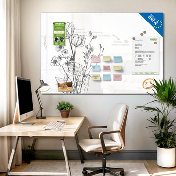 Glas Magnettafel im Querformat Motiv Blumenskizze