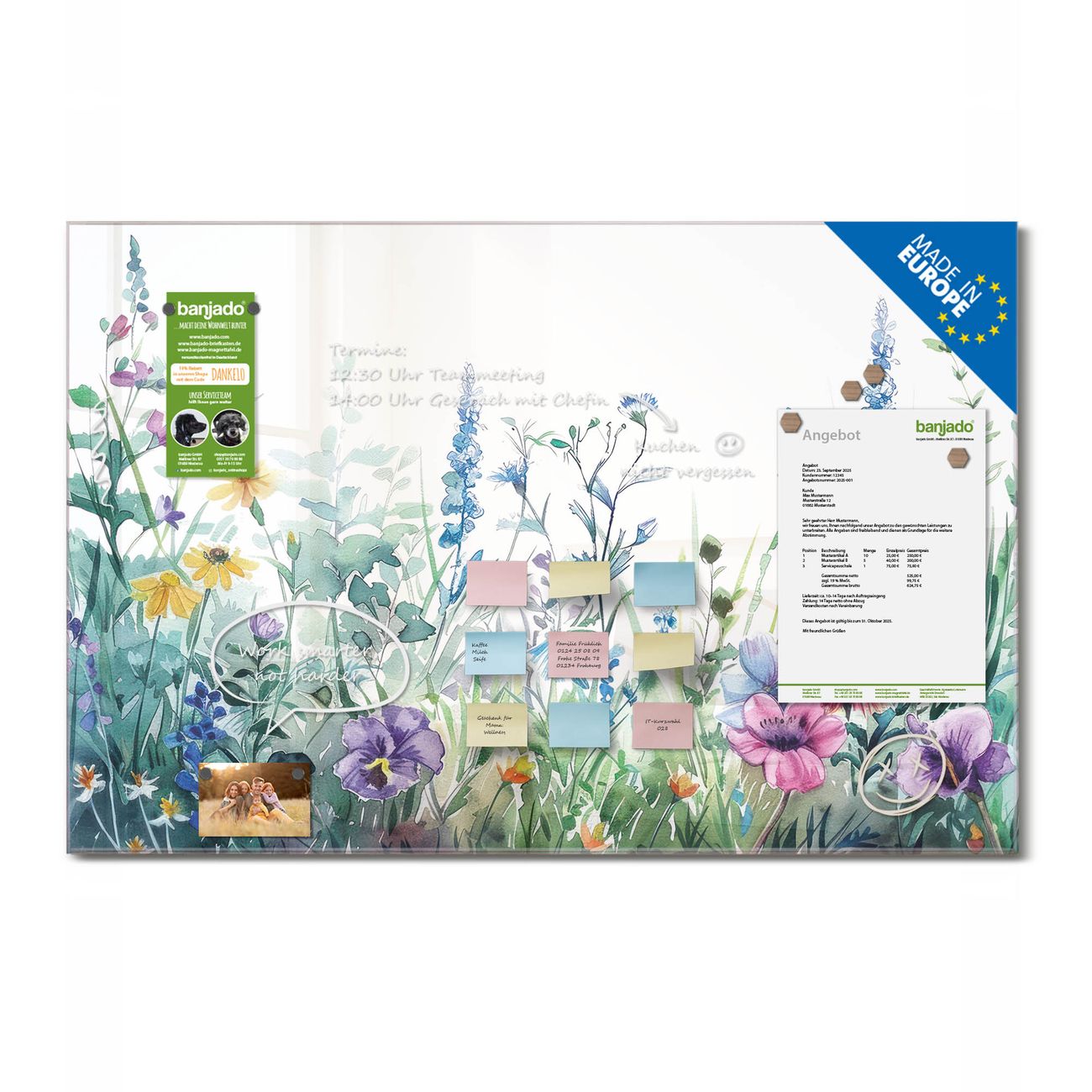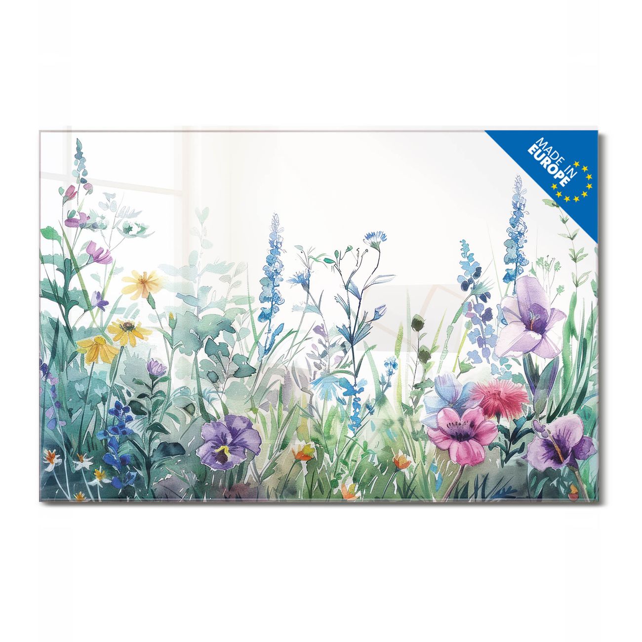 Glas Magnettafel im Querformat Motiv Blumenwiese in Aquarell