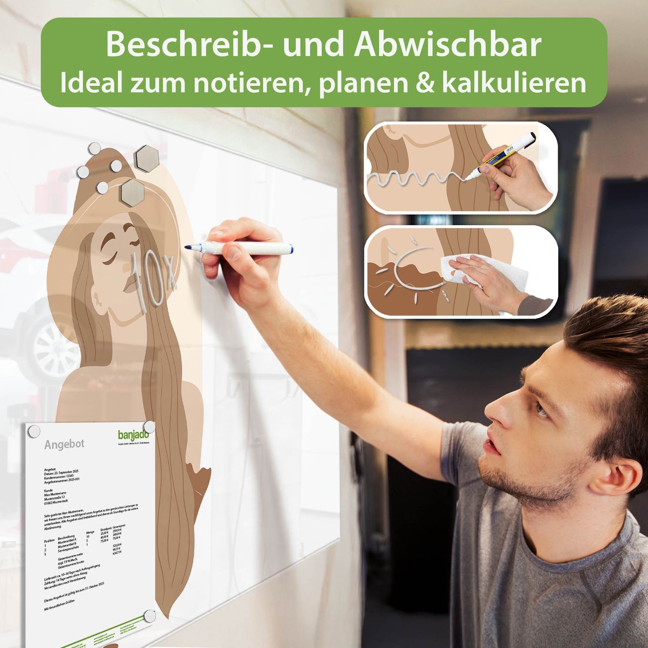 Jede Glas Magnettafel wird in unserer Werkstatt von Hand gefertigt und sorgfältig geprüft. So erhalten Sie ein echtes Qualitätsprodukt, das Funktion und Ästhetik perfekt vereint.?? Warum banjado?