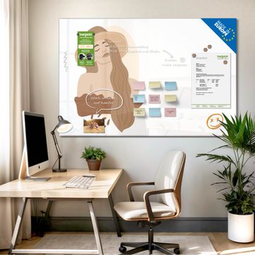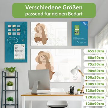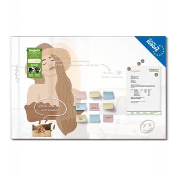 Die banjado Glas Magnettafel mit dem Motiv Motiv Boho Frau verbindet Funktionalität mit Stil. Sie ersetzt das Zettelchaos durch klare Strukturen und bringt dabei eine warme, natürliche Atmosphäre in Ihr Zuhause. Ob im Büro, in der Küche oder im Eingangsbereich - dieses Design-Board zieht Blicke an und sorgt für Ordnung mit Charakter.
