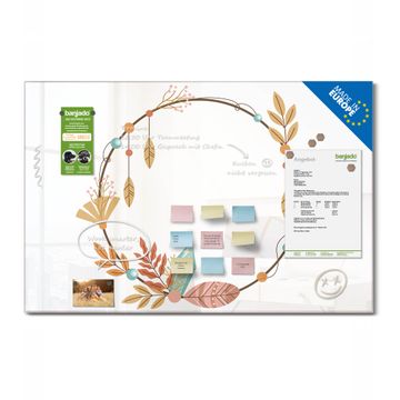 Ein Stück Design, das Ihren Alltag organisiert. Schreiben, heften, inspirieren - alles an einem Ort. Qualität, die man spürt. Montage leicht gemacht. Handwerk mit Herz - veredelt in Sachsen. Einzigartiges Design mit Motiv Motiv Boho Herbstkranz Beschreibbare Glasoberfläche, leicht zu reinigen Starke Magnetkraft durch Stahlrückwand Inklusive 4 Neodym-Magneten Flexible Montageoptionen Handveredelt in Sachsen - Qualität, die bleibt