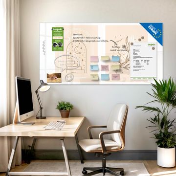 Auf der glatten Glasoberfläche lassen sich Termine, Rezepte oder Notizen ganz einfach mit Kreidestiften festhalten und rückstandslos entfernen. Starke Neodym-Magnete halten Ihre wichtigsten Erinnerungen sicher an Ort und Stelle. So entsteht Ihre ganz persönliche Ideenwand - jeden Tag neu.