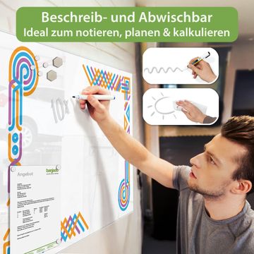Auf der glatten Glasoberfläche lassen sich Termine, Rezepte oder Notizen ganz einfach mit Kreidestiften festhalten und rückstandslos entfernen. Starke Neodym-Magnete halten Ihre wichtigsten Erinnerungen sicher an Ort und Stelle. So entsteht Ihre ganz persönliche Ideenwand - jeden Tag neu.