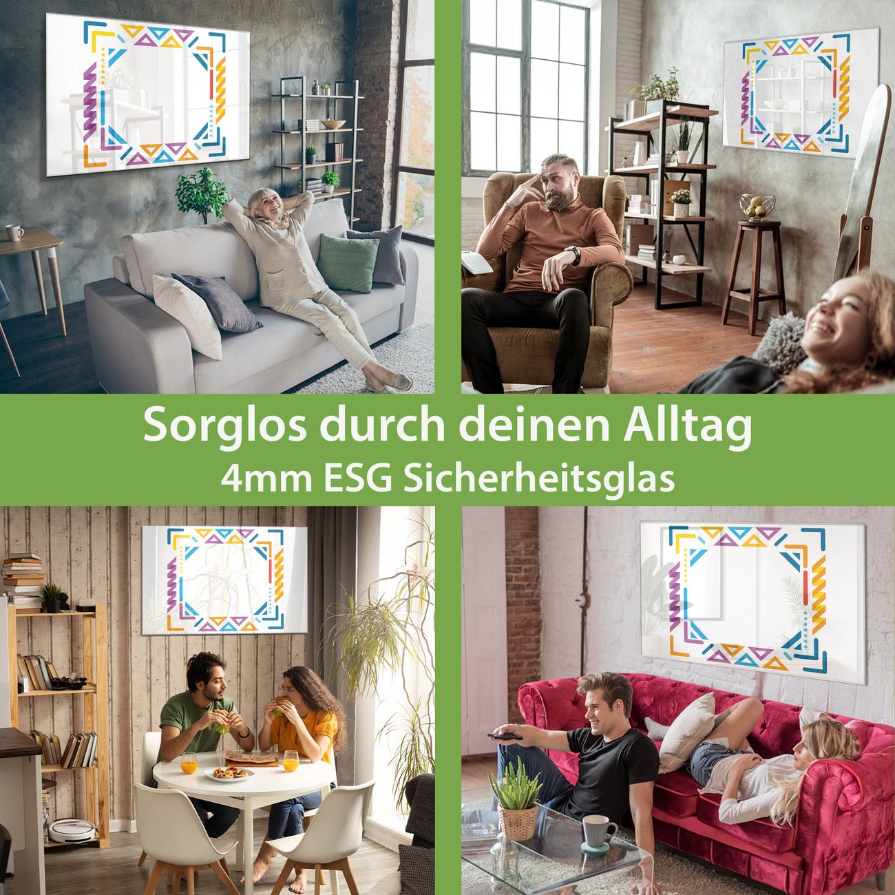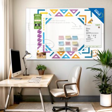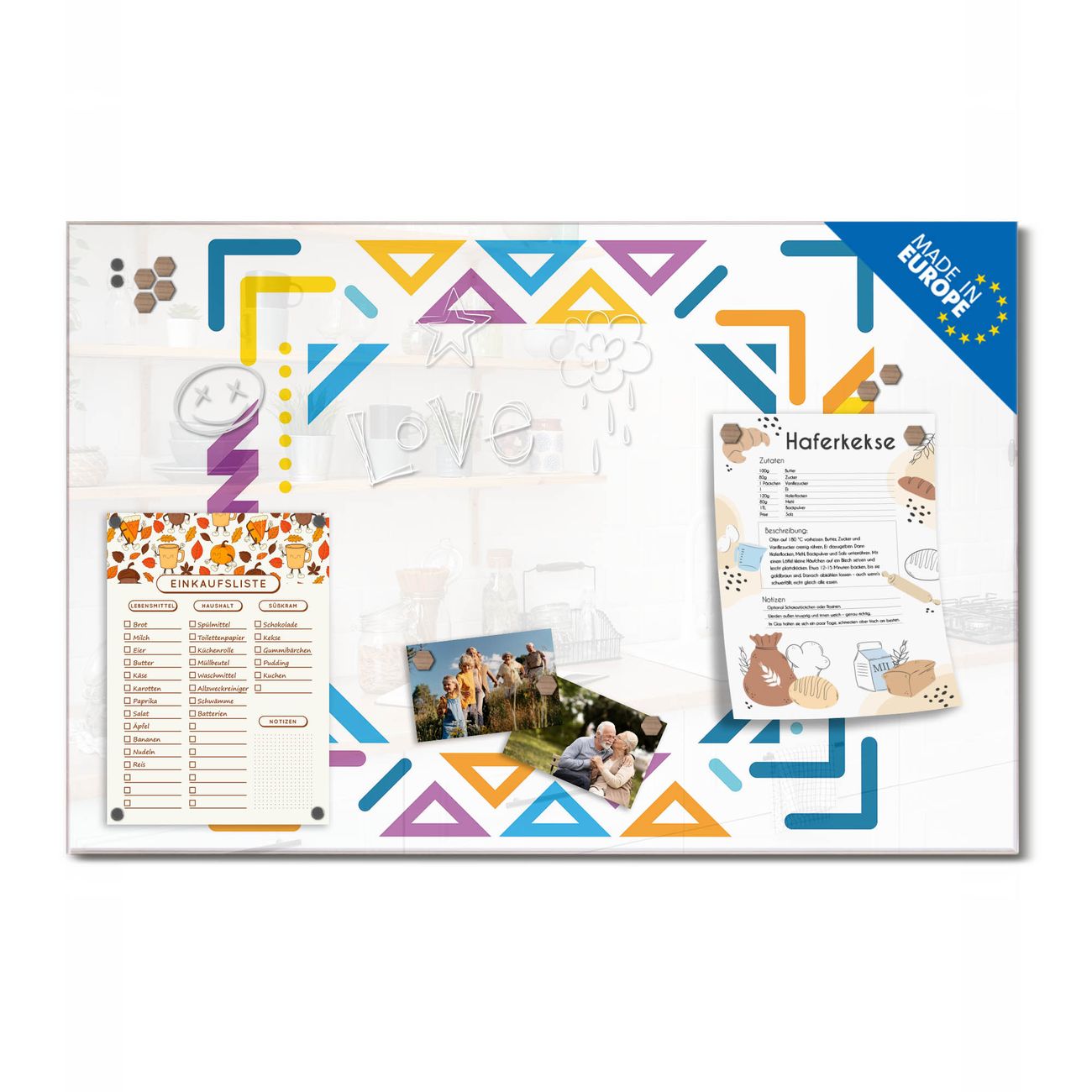 Glas Magnettafel im Querformat Motiv Bunter Geometrischer Rahmen