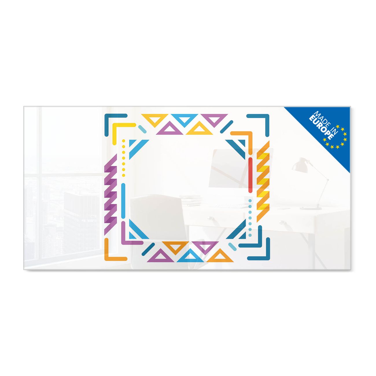 Glas Magnettafel im Querformat Motiv Bunter Geometrischer Rahmen