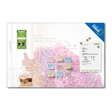 Die banjado Glas Magnettafel mit dem Motiv Motiv Buntes Mandala verbindet Funktionalität mit Stil. Sie ersetzt das Zettelchaos durch klare Strukturen und bringt dabei eine warme, natürliche Atmosphäre in Ihr Zuhause. Ob im Büro, in der Küche oder im Eingangsbereich - dieses Design-Board zieht Blicke an und sorgt für Ordnung mit Charakter.