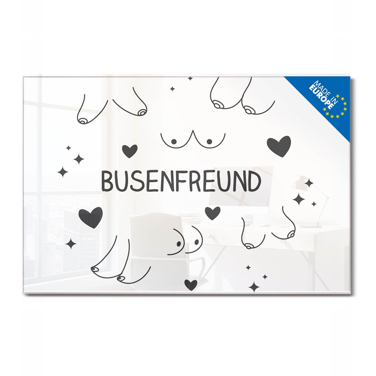 Ein Stück Design, das Ihren Alltag organisiert. Schreiben, heften, inspirieren - alles an einem Ort. Qualität, die man spürt. Montage leicht gemacht. Handwerk mit Herz - veredelt in Sachsen. Einzigartiges Design mit Motiv Motiv Busenfreund 2 Beschreibbare Glasoberfläche, leicht zu reinigen Starke Magnetkraft durch Stahlrückwand Inklusive 4 Neodym-Magneten Flexible Montageoptionen Handveredelt in Sachsen - Qualität, die bleibt