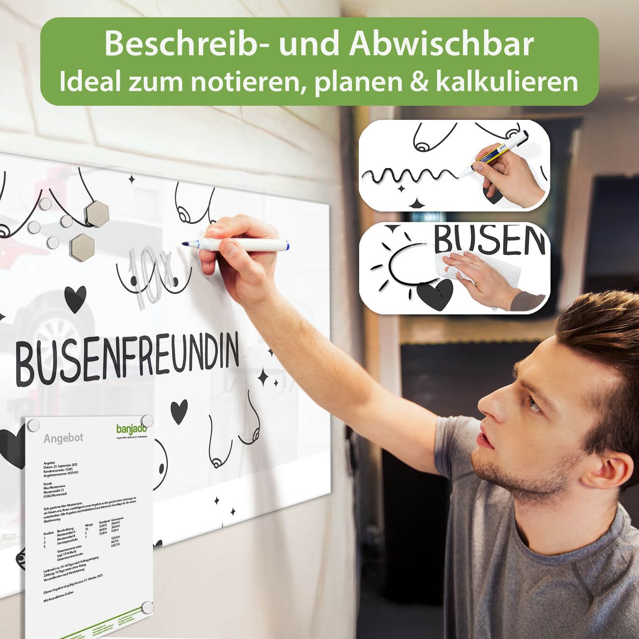 Glas Magnettafel im Querformat Motiv Busenfreundin 2