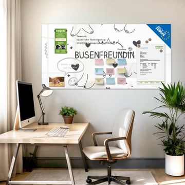 Die banjado Glas Magnettafel mit dem Motiv Motiv Busenfreundin 2 verbindet Funktionalität mit Stil. Sie ersetzt das Zettelchaos durch klare Strukturen und bringt dabei eine warme, natürliche Atmosphäre in Ihr Zuhause. Ob im Büro, in der Küche oder im Eingangsbereich - dieses Design-Board zieht Blicke an und sorgt für Ordnung mit Charakter.