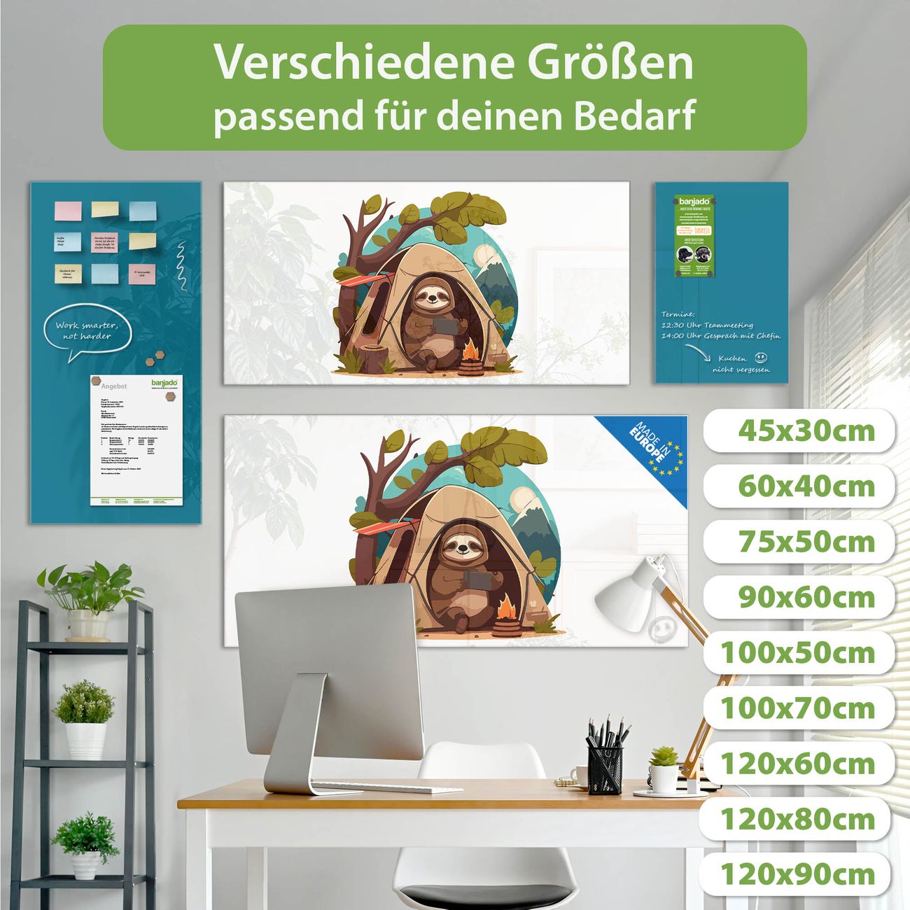 Glas Magnettafel im Querformat Motiv Camping mit Faultier
