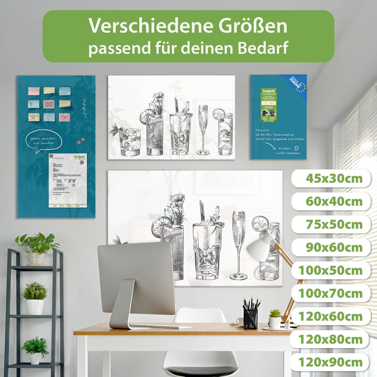 Ein Stück Design, das Ihren Alltag organisiert. Schreiben, heften, inspirieren - alles an einem Ort. Qualität, die man spürt. Montage leicht gemacht. Handwerk mit Herz - veredelt in Sachsen. Einzigartiges Design mit Motiv Motiv Cocktail Skizzen Beschreibbare Glasoberfläche, leicht zu reinigen Starke Magnetkraft durch Stahlrückwand Inklusive 4 Neodym-Magneten Flexible Montageoptionen Handveredelt in Sachsen - Qualität, die bleibt