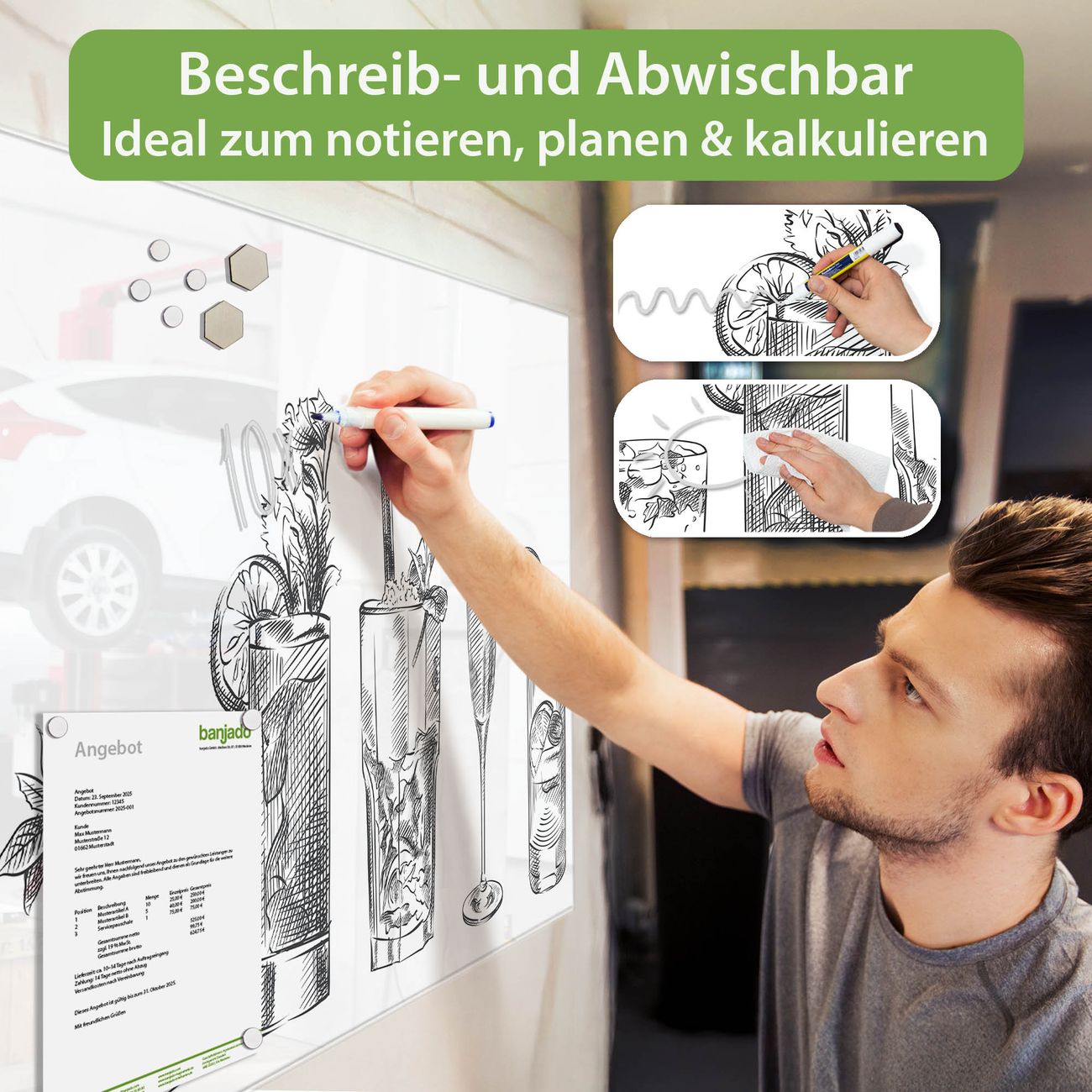 Jede Glas Magnettafel wird in unserer Werkstatt von Hand gefertigt und sorgfältig geprüft. So erhalten Sie ein echtes Qualitätsprodukt, das Funktion und Ästhetik perfekt vereint.?? Warum banjado?