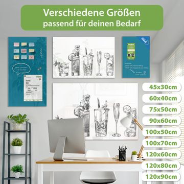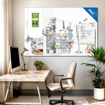 Glas Magnettafel im Querformat Motiv Cocktail Skizzen