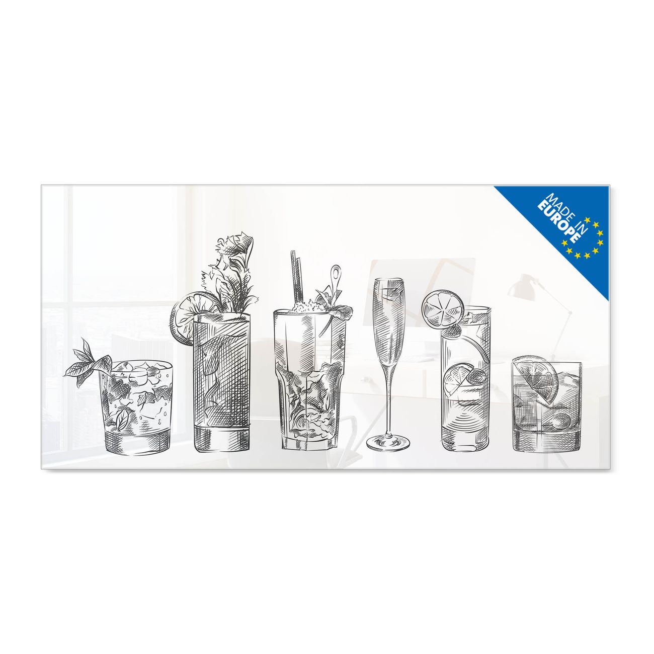Glas Magnettafel im Querformat Motiv Cocktail Skizzen