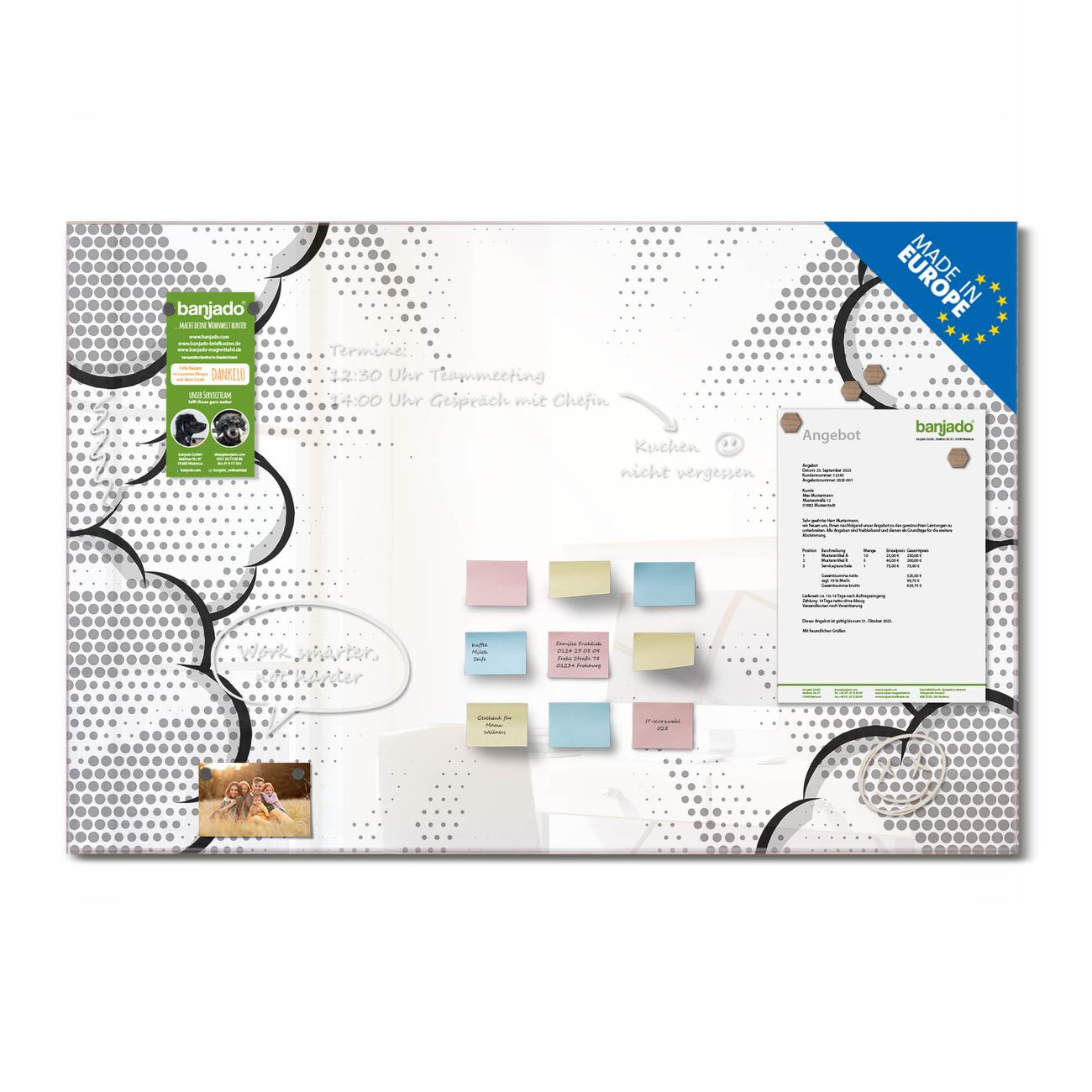 Ein Stück Design, das Ihren Alltag organisiert. Schreiben, heften, inspirieren - alles an einem Ort. Qualität, die man spürt. Montage leicht gemacht. Handwerk mit Herz - veredelt in Sachsen. Einzigartiges Design mit Motiv Motiv Comic Explosion Beschreibbare Glasoberfläche, leicht zu reinigen Starke Magnetkraft durch Stahlrückwand Inklusive 4 Neodym-Magneten Flexible Montageoptionen Handveredelt in Sachsen - Qualität, die bleibt