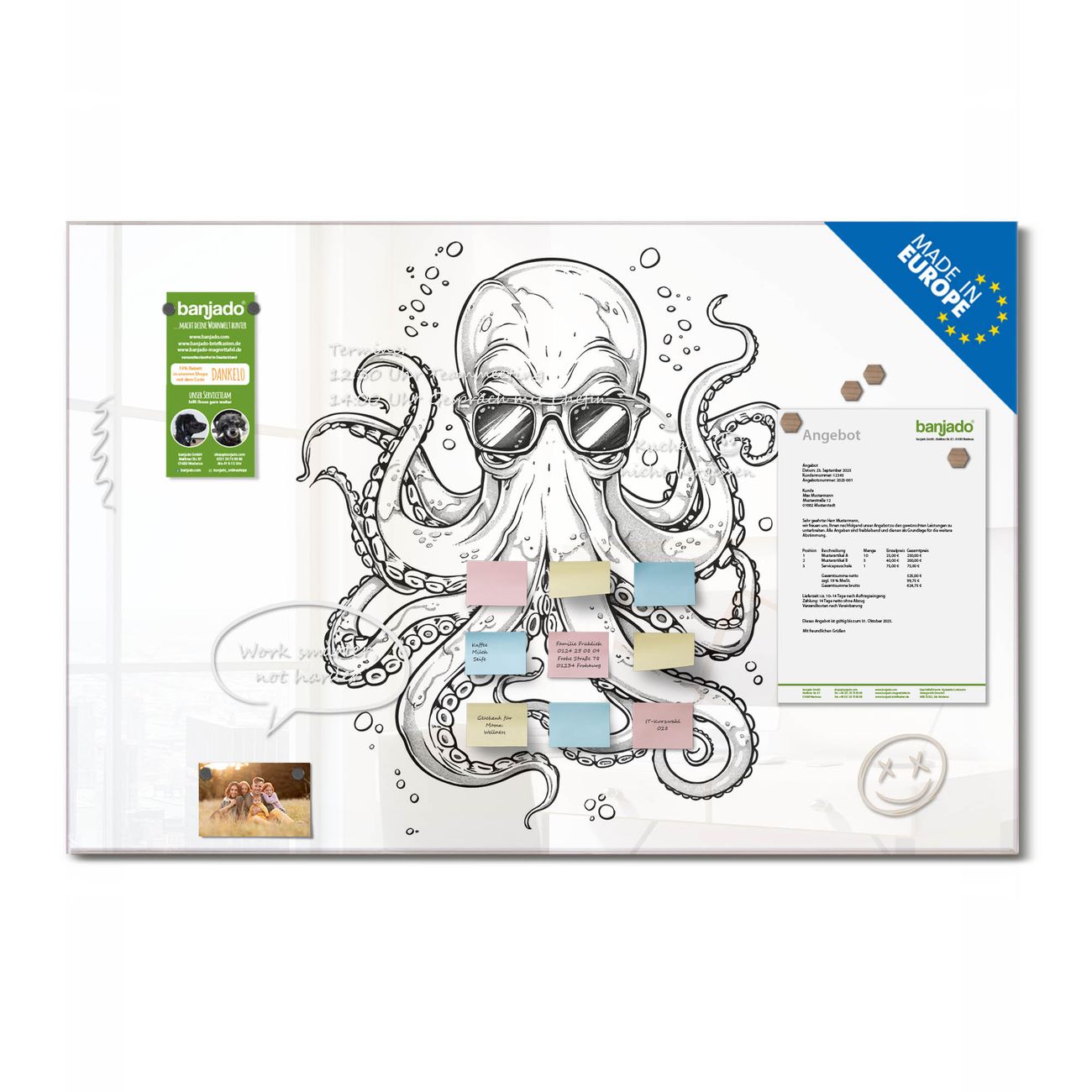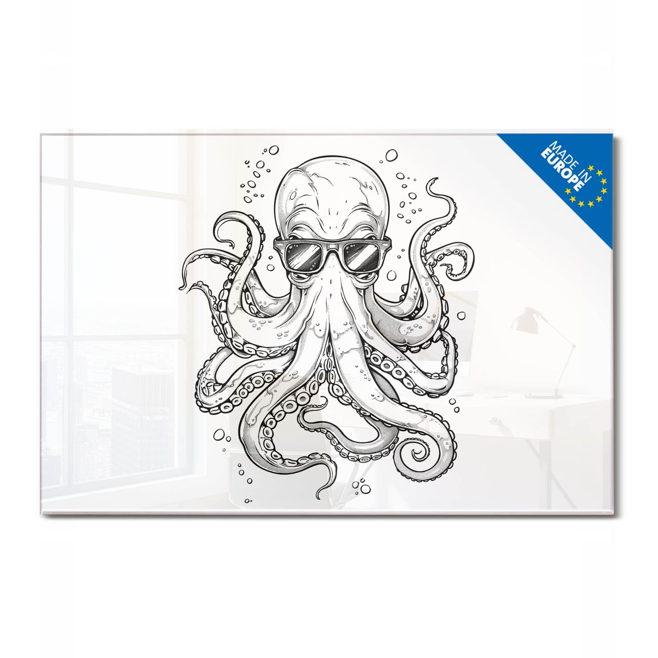 Glas Magnettafel im Querformat Motiv Coole Oktopus-Skizze