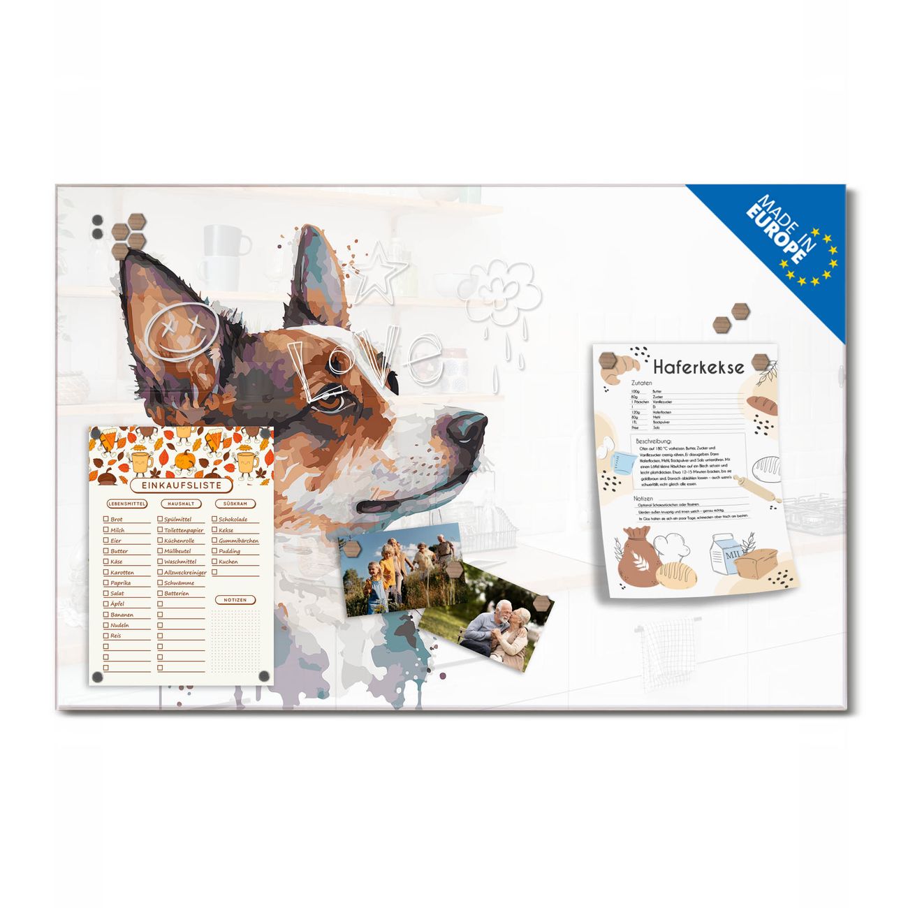 Glas Magnettafel im Querformat Motiv Corgi Aquarell