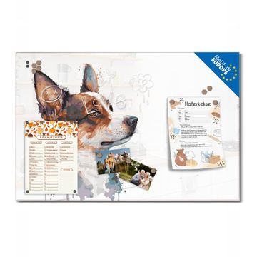 Ein Stück Design, das Ihren Alltag organisiert. Schreiben, heften, inspirieren - alles an einem Ort. Qualität, die man spürt. Montage leicht gemacht. Handwerk mit Herz - veredelt in Sachsen. Einzigartiges Design mit Motiv Motiv Corgi Aquarell Beschreibbare Glasoberfläche, leicht zu reinigen Starke Magnetkraft durch Stahlrückwand Inklusive 4 Neodym-Magneten Flexible Montageoptionen Handveredelt in Sachsen - Qualität, die bleibt