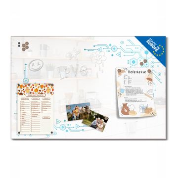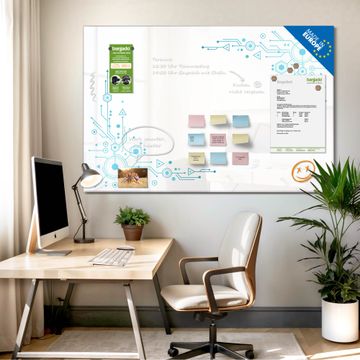 Auf der glatten Glasoberfläche lassen sich Termine, Rezepte oder Notizen ganz einfach mit Kreidestiften festhalten und rückstandslos entfernen. Starke Neodym-Magnete halten Ihre wichtigsten Erinnerungen sicher an Ort und Stelle. So entsteht Ihre ganz persönliche Ideenwand - jeden Tag neu.