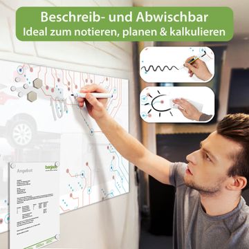 Die banjado Glas Magnettafel mit dem Motiv Motiv Digitales Schaltkreismuster verbindet Funktionalität mit Stil. Sie ersetzt das Zettelchaos durch klare Strukturen und bringt dabei eine warme, natürliche Atmosphäre in Ihr Zuhause. Ob im Büro, in der Küche oder im Eingangsbereich - dieses Design-Board zieht Blicke an und sorgt für Ordnung mit Charakter.