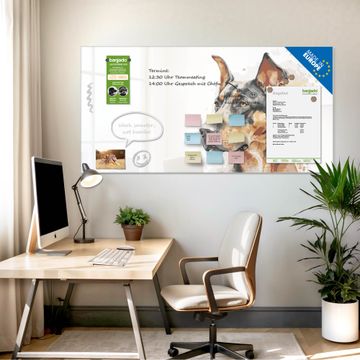 Die banjado Glas Magnettafel mit dem Motiv Motiv Dobermann-Portrait verbindet Funktionalität mit Stil. Sie ersetzt das Zettelchaos durch klare Strukturen und bringt dabei eine warme, natürliche Atmosphäre in Ihr Zuhause. Ob im Büro, in der Küche oder im Eingangsbereich - dieses Design-Board zieht Blicke an und sorgt für Ordnung mit Charakter.