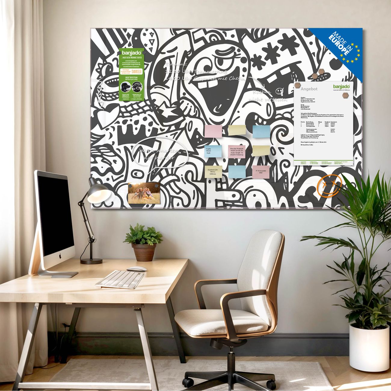 Die banjado Glas Magnettafel mit dem Motiv Motiv Doodle Chaos verbindet Funktionalität mit Stil. Sie ersetzt das Zettelchaos durch klare Strukturen und bringt dabei eine warme, natürliche Atmosphäre in Ihr Zuhause. Ob im Büro, in der Küche oder im Eingangsbereich - dieses Design-Board zieht Blicke an und sorgt für Ordnung mit Charakter.