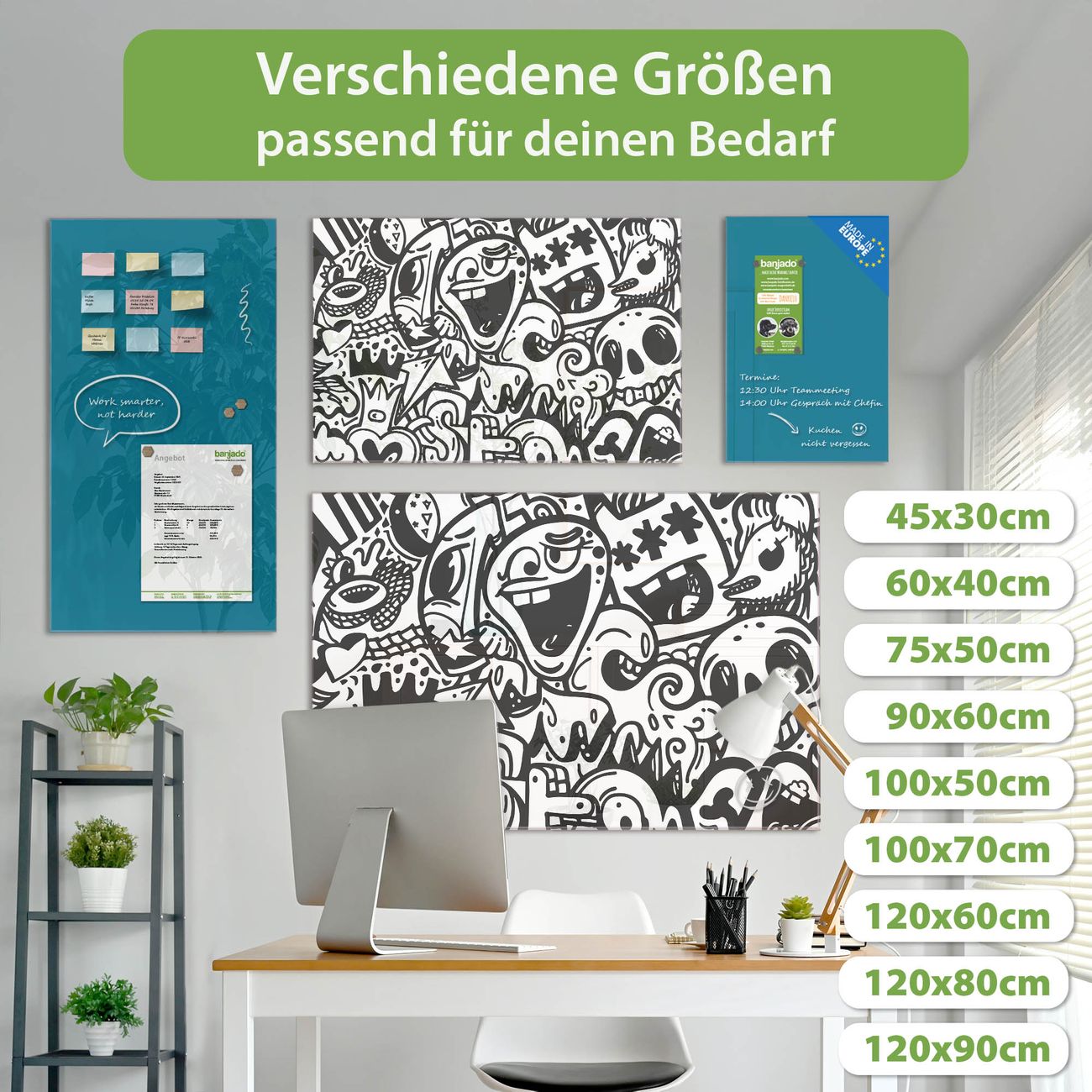 Ein Stück Design, das Ihren Alltag organisiert. Schreiben, heften, inspirieren - alles an einem Ort. Qualität, die man spürt. Montage leicht gemacht. Handwerk mit Herz - veredelt in Sachsen. Einzigartiges Design mit Motiv Motiv Doodle Chaos Beschreibbare Glasoberfläche, leicht zu reinigen Starke Magnetkraft durch Stahlrückwand Inklusive 4 Neodym-Magneten Flexible Montageoptionen Handveredelt in Sachsen - Qualität, die bleibt