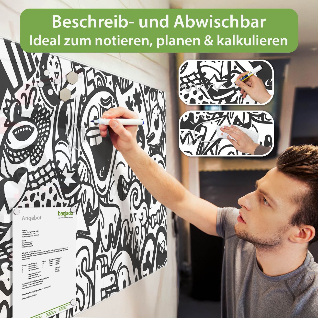 Jede Glas Magnettafel wird in unserer Werkstatt von Hand gefertigt und sorgfältig geprüft. So erhalten Sie ein echtes Qualitätsprodukt, das Funktion und Ästhetik perfekt vereint.?? Warum banjado?