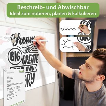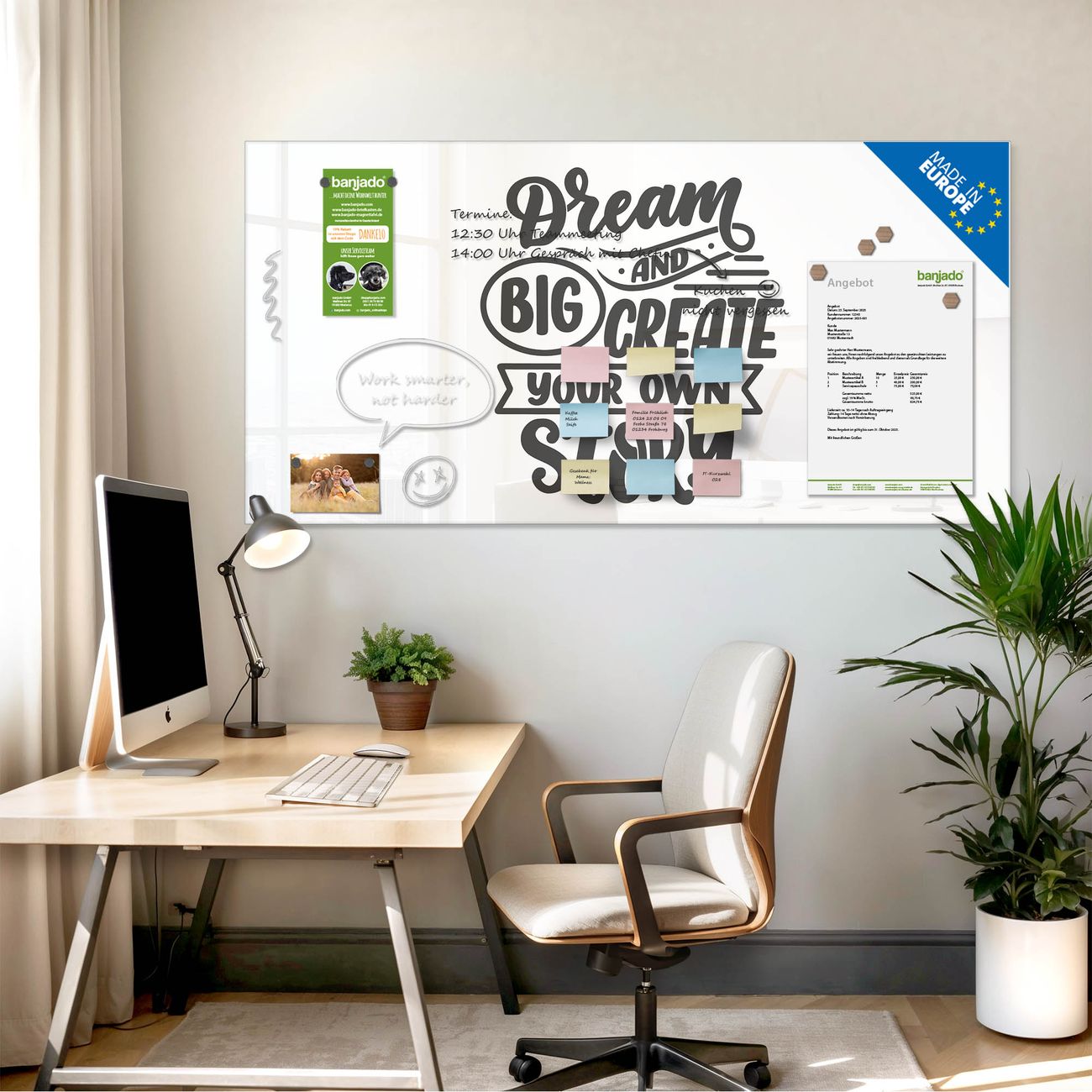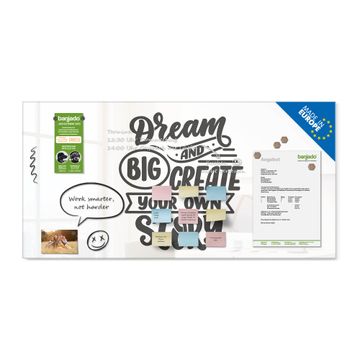 Die banjado Glas Magnettafel mit dem Motiv Motiv Dream Big 2 verbindet Funktionalität mit Stil. Sie ersetzt das Zettelchaos durch klare Strukturen und bringt dabei eine warme, natürliche Atmosphäre in Ihr Zuhause. Ob im Büro, in der Küche oder im Eingangsbereich - dieses Design-Board zieht Blicke an und sorgt für Ordnung mit Charakter.