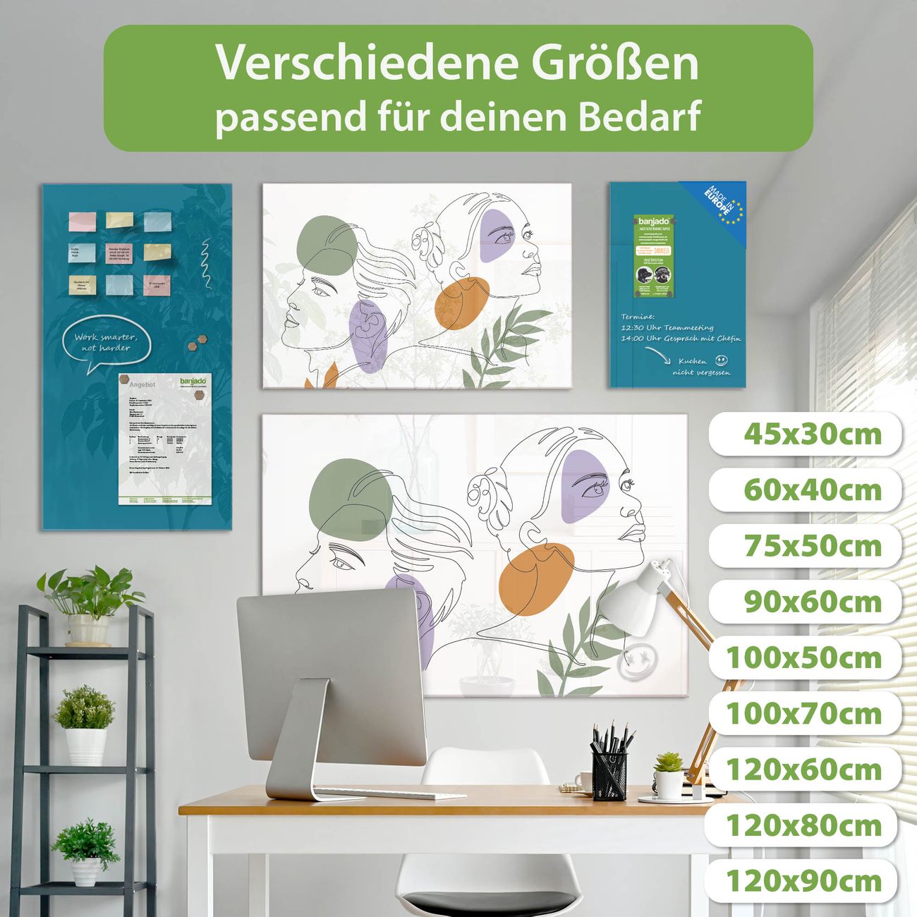 Jede Glas Magnettafel wird in unserer Werkstatt von Hand gefertigt und sorgfältig geprüft. So erhalten Sie ein echtes Qualitätsprodukt, das Funktion und Ästhetik perfekt vereint.?? Warum banjado?