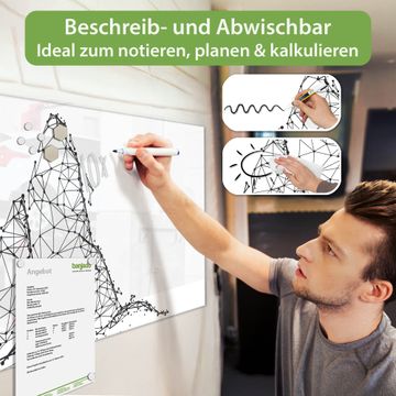 Auf der glatten Glasoberfläche lassen sich Termine, Rezepte oder Notizen ganz einfach mit Kreidestiften festhalten und rückstandslos entfernen. Starke Neodym-Magnete halten Ihre wichtigsten Erinnerungen sicher an Ort und Stelle. So entsteht Ihre ganz persönliche Ideenwand - jeden Tag neu.