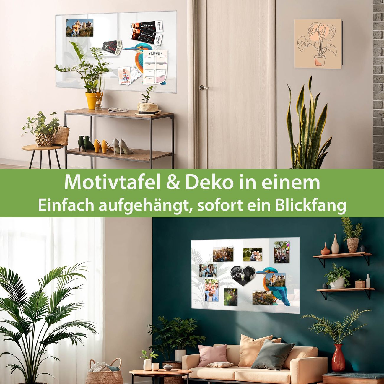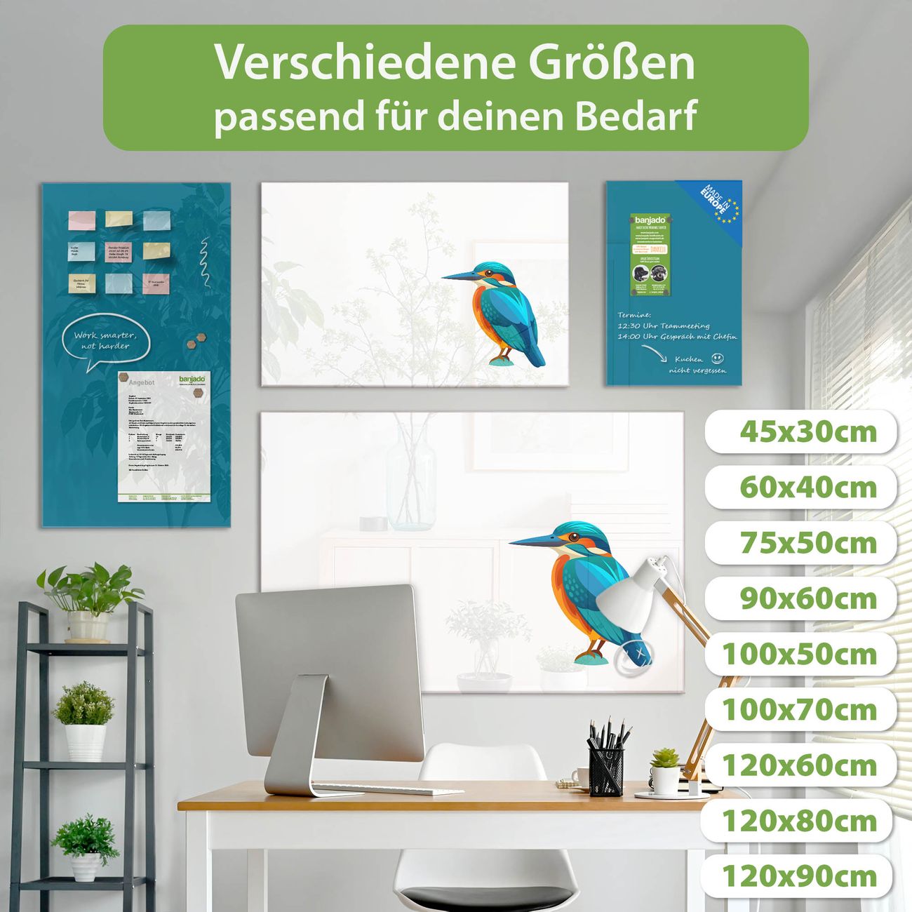 Ein Stück Design, das Ihren Alltag organisiert. Schreiben, heften, inspirieren - alles an einem Ort. Qualität, die man spürt. Montage leicht gemacht. Handwerk mit Herz - veredelt in Sachsen. Einzigartiges Design mit Motiv Motiv Eisvogel Illustration Beschreibbare Glasoberfläche, leicht zu reinigen Starke Magnetkraft durch Stahlrückwand Inklusive 4 Neodym-Magneten Flexible Montageoptionen Handveredelt in Sachsen - Qualität, die bleibt